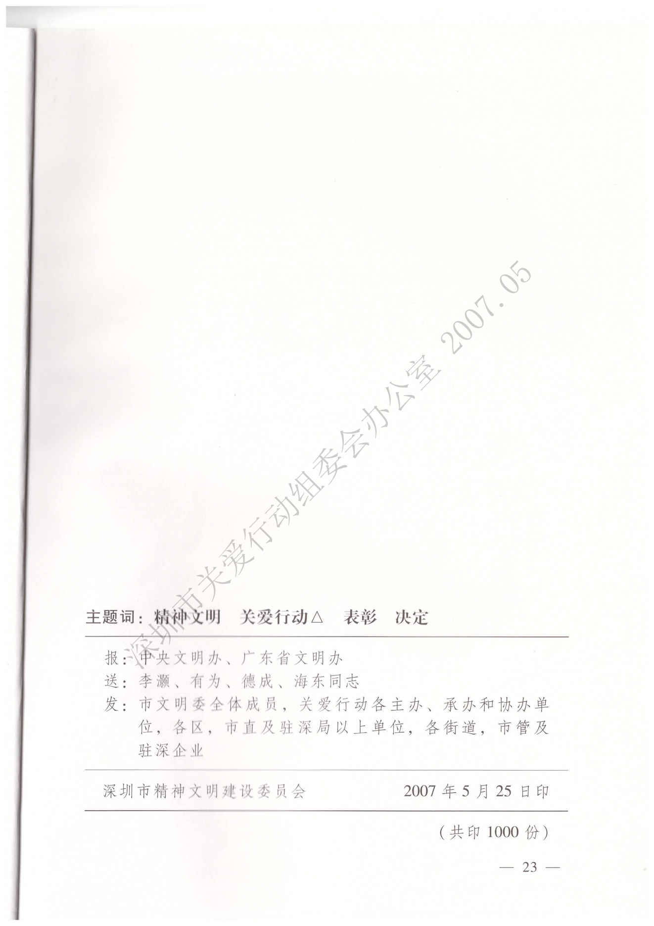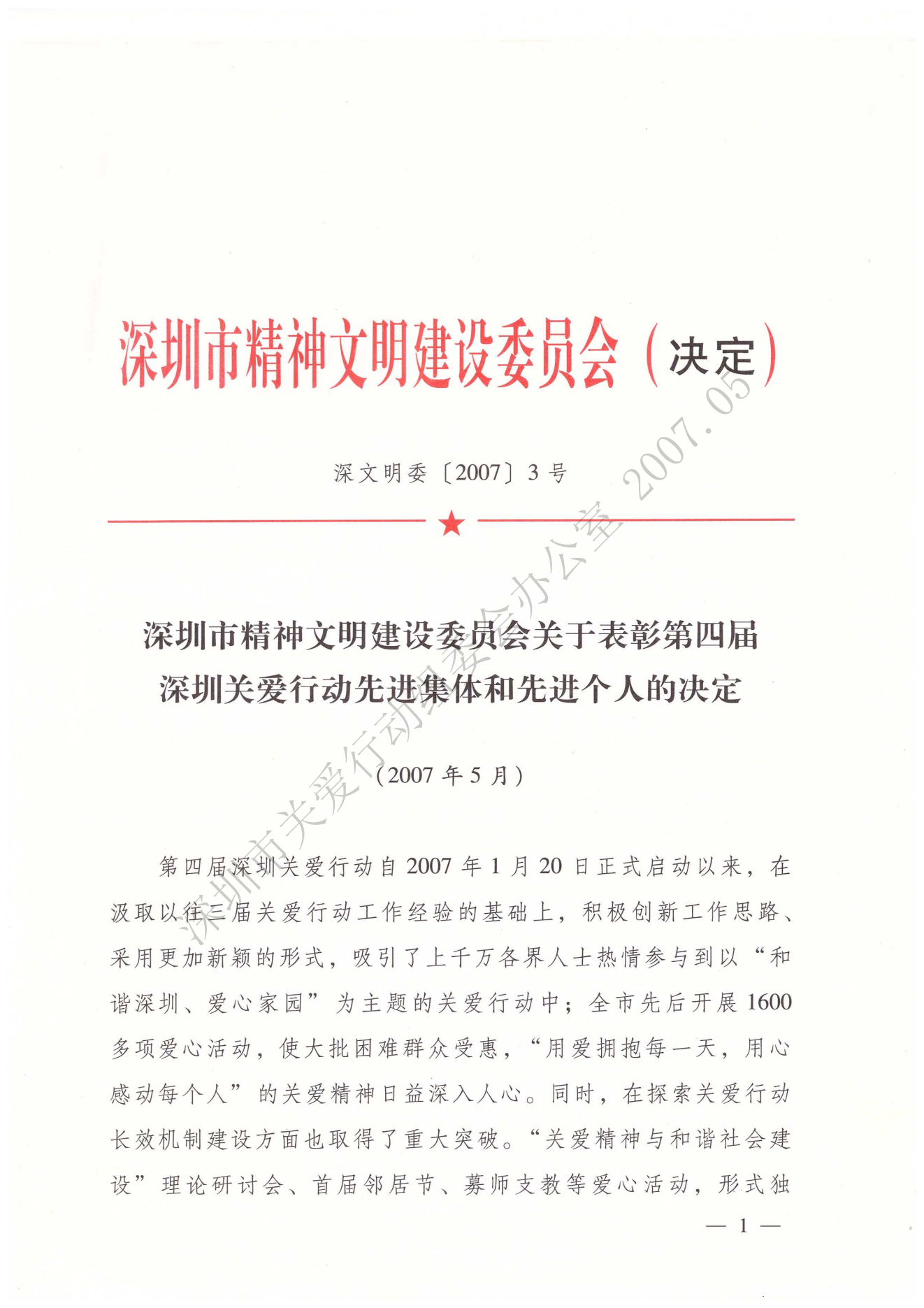 深圳市精神文明建設委員會關于表彰第四屆深圳關愛行動先進集體和先進個人的決定