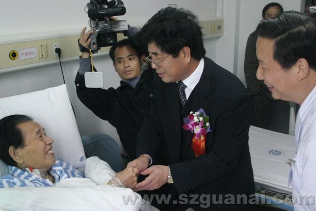 2007年1月29日,袁顯文轉診到深圳平樂骨傷科醫院繼續治療,不少社會愛心人士紛紛前來探訪慰問,為他家人送來慰問金、問候和祝福,他們當中有企業老總、殘疾人、普通市民等。(特區報記者許光明 實習生張覓攝)