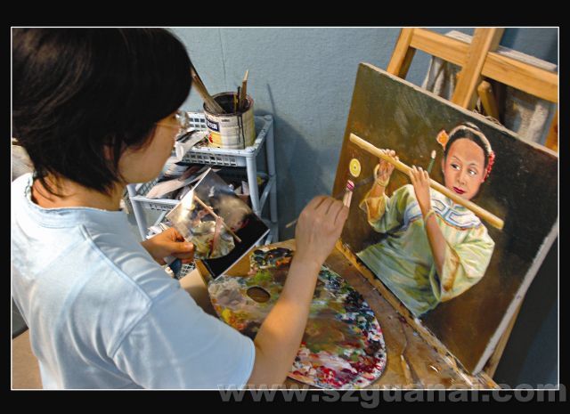 大芬油畫村的畫師在精心作畫組照(黃佩儀攝)