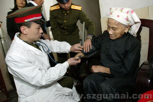 平湖街道辦事處婦聯主席、平湖巾幗互助會會長、平湖駐軍醫生慰問孤寡老人97歲孤寡老人黃榮泰(程海昆)
