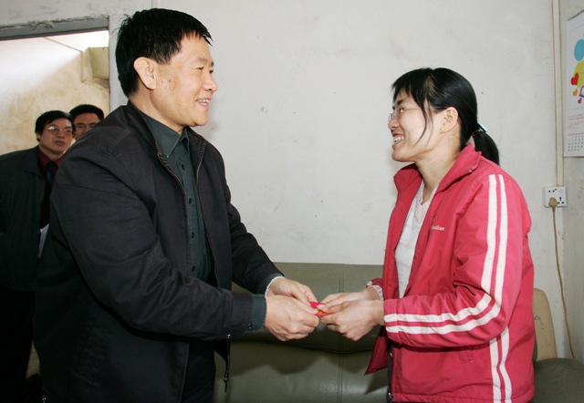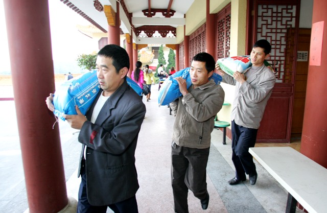慰問團將大米和食用油等生活用品送到吳茂輝家中。
