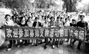 由深圳商報社、市關愛辦、市慈善會、深圳中航集團、許凌峰“募師支教愛心聯盟”共同主辦的第六批深圳“募師支教”行動,吸引全國10多個省、市、自治區的400多人踴躍報名,經過初選、面試等環節的“角逐”,最后80名佼佼者脫穎而出,成為深圳“募師支教”行動新一批支教志愿者。據了解,他們中絕大部分是“80后”的年輕人,大多具有本科以上學歷,其中不乏“海歸”、碩士研究生等高學歷者。