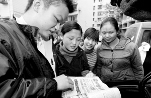 羅海岳給孩子們帶去報道她們堅強求學的《深圳特區報》。