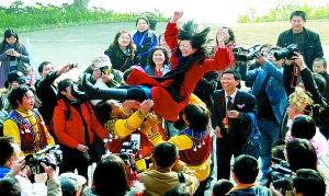 熱情的苗家兒女將“海豚大使”高高拋在空中。