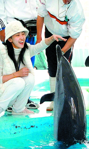 在海豚館里,大家終于見到了本次活動的大明星——4只活潑可愛的海豚。它們在深達6米的池里暢游,見到迎接自己的“親人”,開心地跳出水面。隨后出現(xiàn)了感人的一幕:“海豚大使”在工作人員帶領下與這些海洋精靈親密接觸,它們相繼安靜下來,游到岸邊,用長長的吻部輕輕觸碰大使們的手。兩個自閉癥兒童吳子喻、徐宇彤格外開心,他們還拿著小魚喂給海豚,聽到海豚的鳴叫,兩個孩子開心地笑個不停。