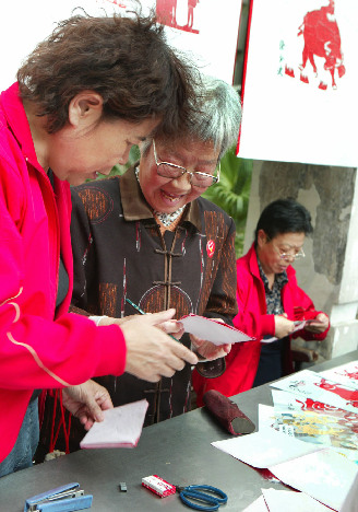 兩個月前,屈阿姨因心臟問題住進了醫院,這才出院一個月,屈阿姨就前來參加“鄰里節”活動,之前大家伙都勸她在家好好休息,可她卻說:“學剪紙對和諧鄰里關系很有幫助,我一定要講講我的感受。”