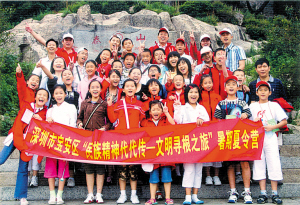 為紀念中國工農紅軍長征70周年,增強全區青少年愛國情感,引導青少年接觸社會、了解社會,寶安區關工委、區文明辦、區教育局、團區委等七個部門,聯合組織了“重走長征路,點燃愛國情”和“發現深圳”兩項活動。參加此次活動的全區青少年共222人,都是來自全區各中小學的“三好”學生、“優秀少先隊員”、“優秀團員”、勞務工子女和貧困家庭的優秀學生代表。同學們通過在江西革命老區6天的“長征”,接受了一次生動的革命傳統和愛國主義教育,實地體驗到新中國的締造者們為了祖國獨立自主、繁榮富強所作出的艱苦努力和付出的巨大犧牲;通過與老區學生同吃、同住、同勞動,在社會課堂上深刻領悟了“以辛勤勞動為榮、以好逸惡勞為恥”、“以艱苦奮斗為榮、以驕奢淫逸為恥”、“喝水不忘掘井人”的道理。在活動中他們深刻感受到集體主義、團結互助的重要性,收獲了“戰斗友情”。通過“發現深圳”的系列活動,同學們更加了解了深圳、寶安的風俗民情,了解到深圳從小漁村到大特區的艱苦創業史,明白了學好科學文化知識的重要性,紛紛表示一定要更加勤奮學習,鍛煉成才,報答長輩,服務社會。