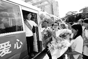 在第七批“募師支教”出發(fā)儀式現(xiàn)場,身披彩色綬帶,手捧鮮花的80名大學生志愿者,被送行的人們簇擁著,成為大家心目中的“明星”。