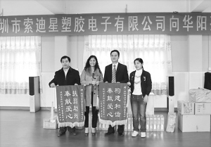 昨日,觀瀾街道華陽特殊兒童康復中心熱鬧非凡,深圳市索迪星塑膠電子有限公司陽海華總經理及10多名觀瀾義工和一批愛心人士向學校的智障兒童簽訂了捐助協議并捐贈了點讀筆。