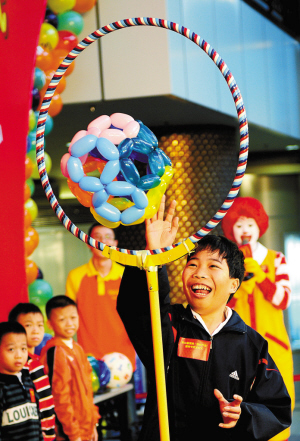 孩子們開心地和麥當勞叔叔玩起了游戲。