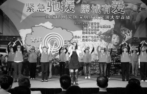 昨天下午5點(diǎn),深圳人的愛(ài)心在中心城廣場(chǎng)的一臺(tái)晚會(huì)上匯集,比亞迪汽車有限公司、深圳中航集團(tuán)、深圳市中醫(yī)院等眾多愛(ài)心企業(yè)和市民加入了為災(zāi)區(qū)捐款的行列。這場(chǎng)名為“緊急馳援 鵬城有愛(ài)”的晚會(huì)在短時(shí)間內(nèi)籌備完成,晚會(huì)不光有以愛(ài)為主題的歌舞表演,還采取現(xiàn)場(chǎng)直播的方式,除了主持人深情的解說(shuō)外,還穿插了一線記者拍攝的災(zāi)區(qū)畫面。此次晚會(huì)由深圳市慈善會(huì)、深圳市關(guān)愛(ài)辦、深圳廣電集團(tuán)、弘法寺聯(lián)合主辦,廣電集團(tuán)都市頻道和中心城廣場(chǎng)承辦。