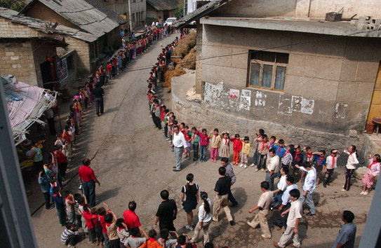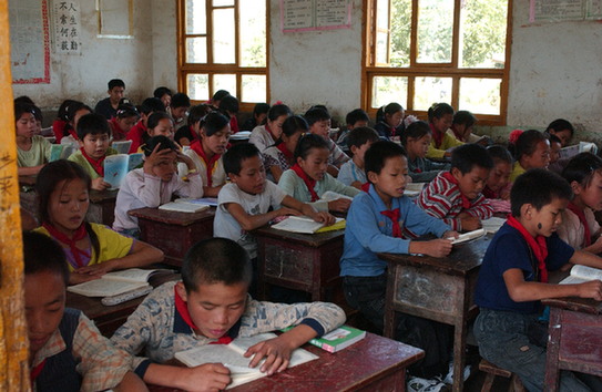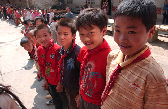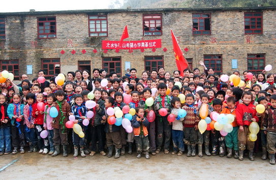 貴州大方縣大水鄉(xiāng)鞍山小學(xué)學(xué)生迎接第二批深圳“募師支教”志愿者