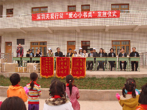 ????深圳市關愛辦副主任徐斌,全國百名優秀志愿者孫影,深圳晚報記者,深圳中航物業管理有限公司代表以及縣文明辦、團縣委、教育局主要負責人出席發放儀式。