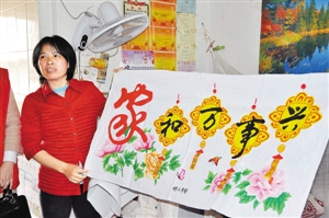 ?深圳關愛網訊 在本報“為特困家庭送年夜飯”活動中,數年收到愛心年夜飯的張圳家庭感受到社會各界的真切關愛,張圳媽媽吳漫紅日前委托記者將其精心制成的兩幅十字繡轉交給吳煢一家。