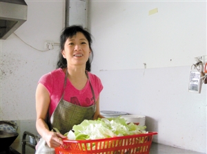 每天上午8時(shí),殘友集團(tuán)衛(wèi)生間內(nèi),田英要趕在殘友上班前打掃衛(wèi)生間。清潔結(jié)束后,將殘友們的衣服放進(jìn)洗衣機(jī),當(dāng)洗衣機(jī)還在運(yùn)作時(shí),田英來到廚房洗菜,和其他大廚一起準(zhǔn)備午餐……5年來,這就是田英的“后勤主管”生活。洗衣、做飯和打掃,基本上構(gòu)成了田女士每日的生活。