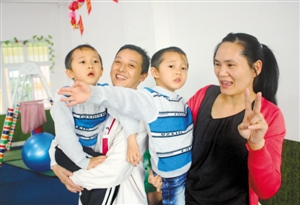 兩年后,徐維初發現孩子還沒有開口說話,也不愿與人交流,總愛發脾氣,嚴重時還咬人。最后孩子被確診為患有自閉癥?!耙宦牭竭@個消息我就蒙了,不知道從何做起。”徐維初說,一個家庭有一個自閉癥兒童就已經很不幸了,更何況是兩個。此后家里就變得很沉寂,同時兩個孩子的身體也不太好,三天兩頭地跑醫院,這在經濟上和精神上都給徐維初帶來不小的壓力。