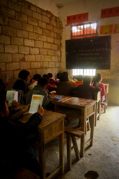 整個年級擠在一間狹小破舊的教室