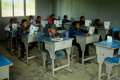 孩子們在簡陋的教室里大聲讀書