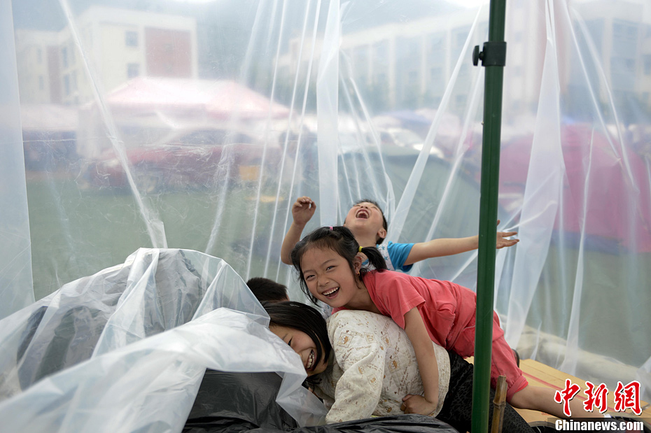 4月21日,四川省雅安市寶興縣靈關鎮(zhèn),靈關中學災民安置點內的孩童。廖攀 攝