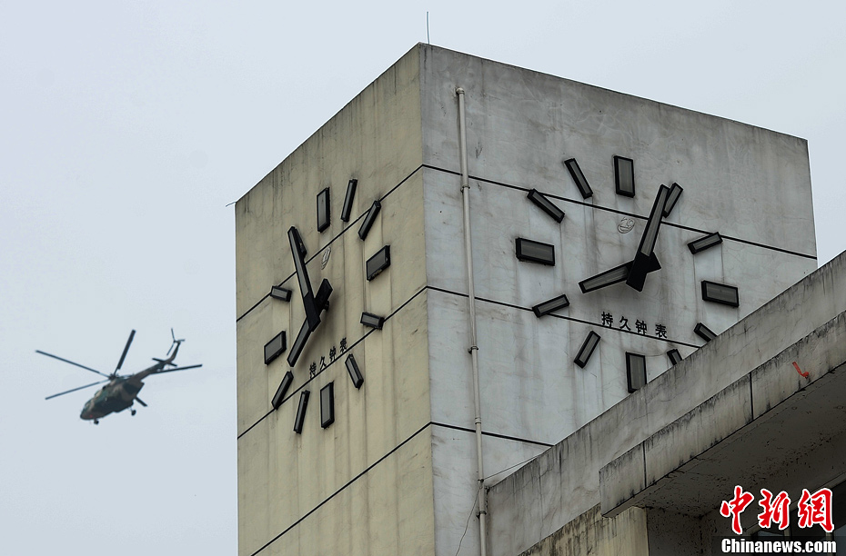 4月21日,一救援直升飛機飛過四川雅安災區上空。4月20日8時2分,四川省雅安市蘆山縣(北緯30.3,東經103.0)發生7.0級地震, 震源深度13公里。中新社發 陳超 攝