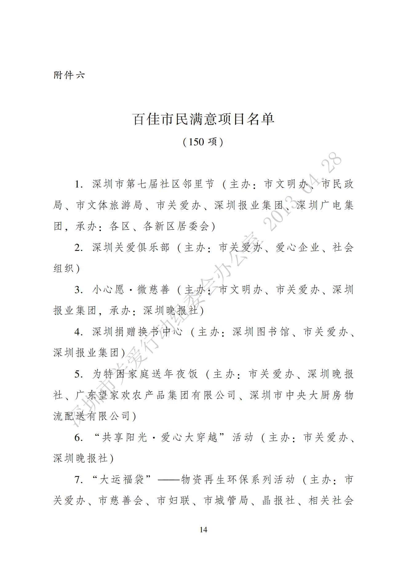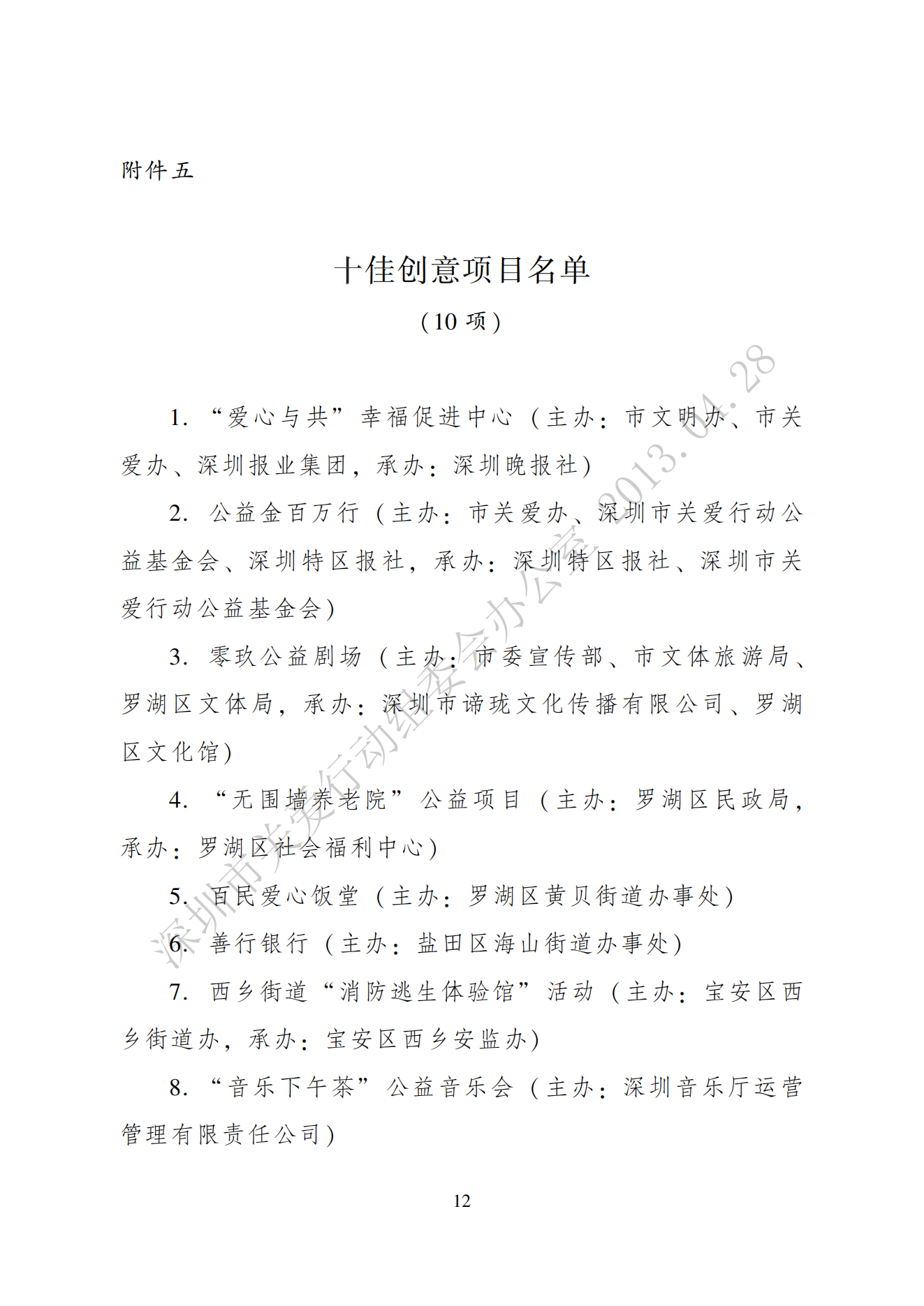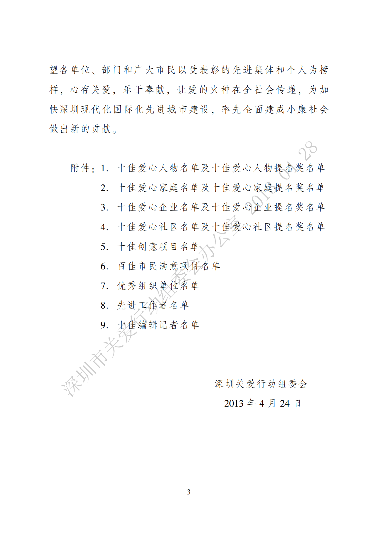關于表彰第十屆深圳關愛行動先進集體、先進個人和優秀項目的通報