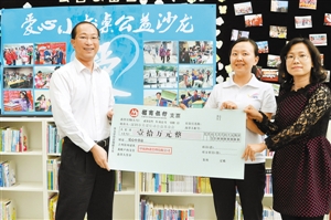 ????8日下午“愛心小書桌”的公益沙龍上,隨著“愛心小書桌”發起人孫影,從中航物業管理有限公司總經理劉文波手中接過10萬元的捐款支票,這意味著更多山區貧困孩子將得到向往已久的小書桌。