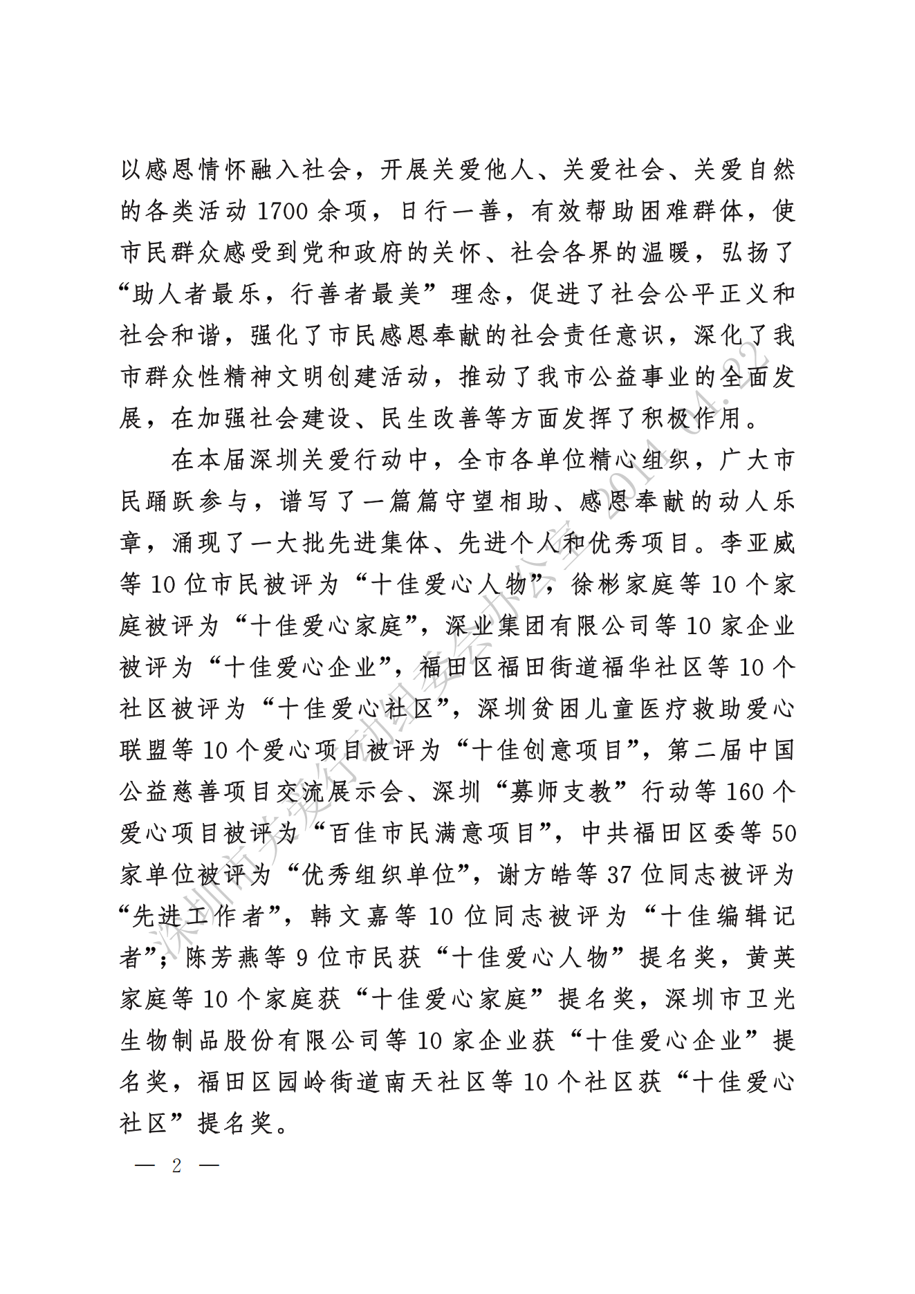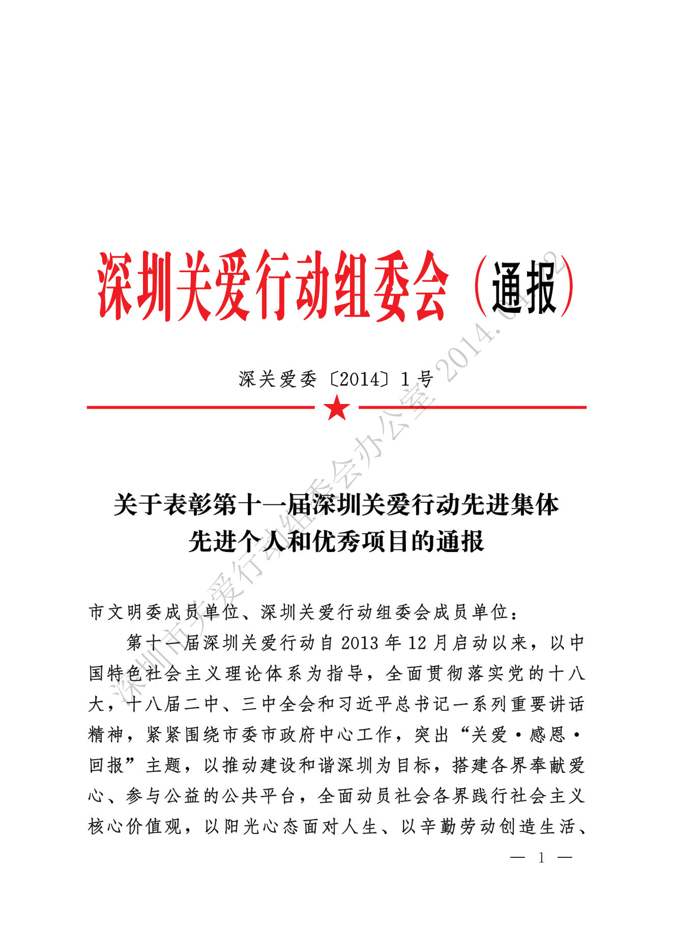 關于表彰第十一屆深圳關愛行動先進集體、先進個人和優秀項目的通報