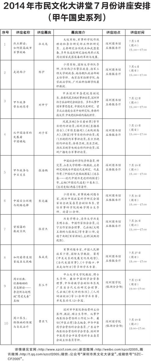 2014年市民文化大講堂7月份講座安排(甲午國(guó)史系列)