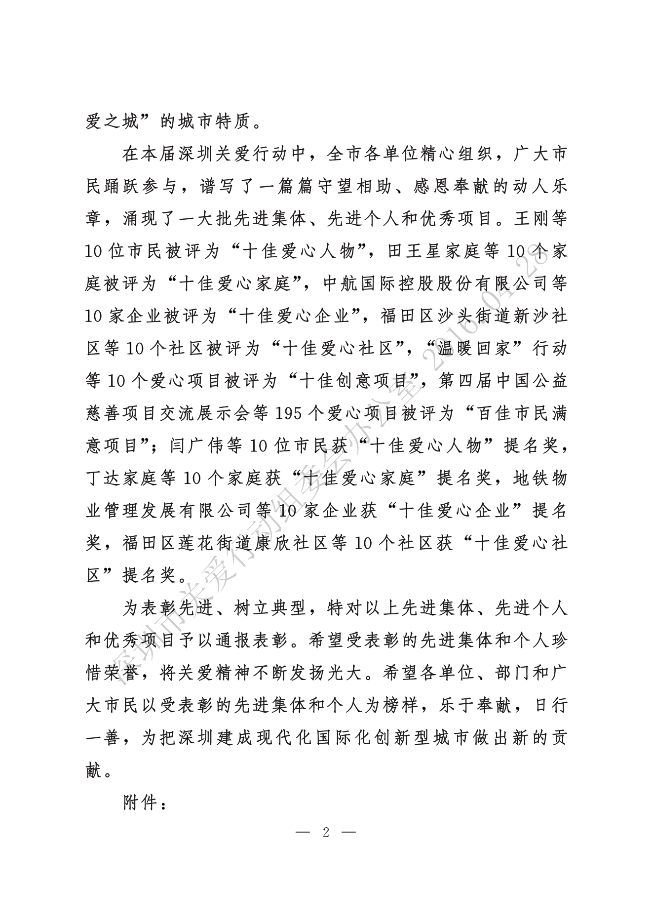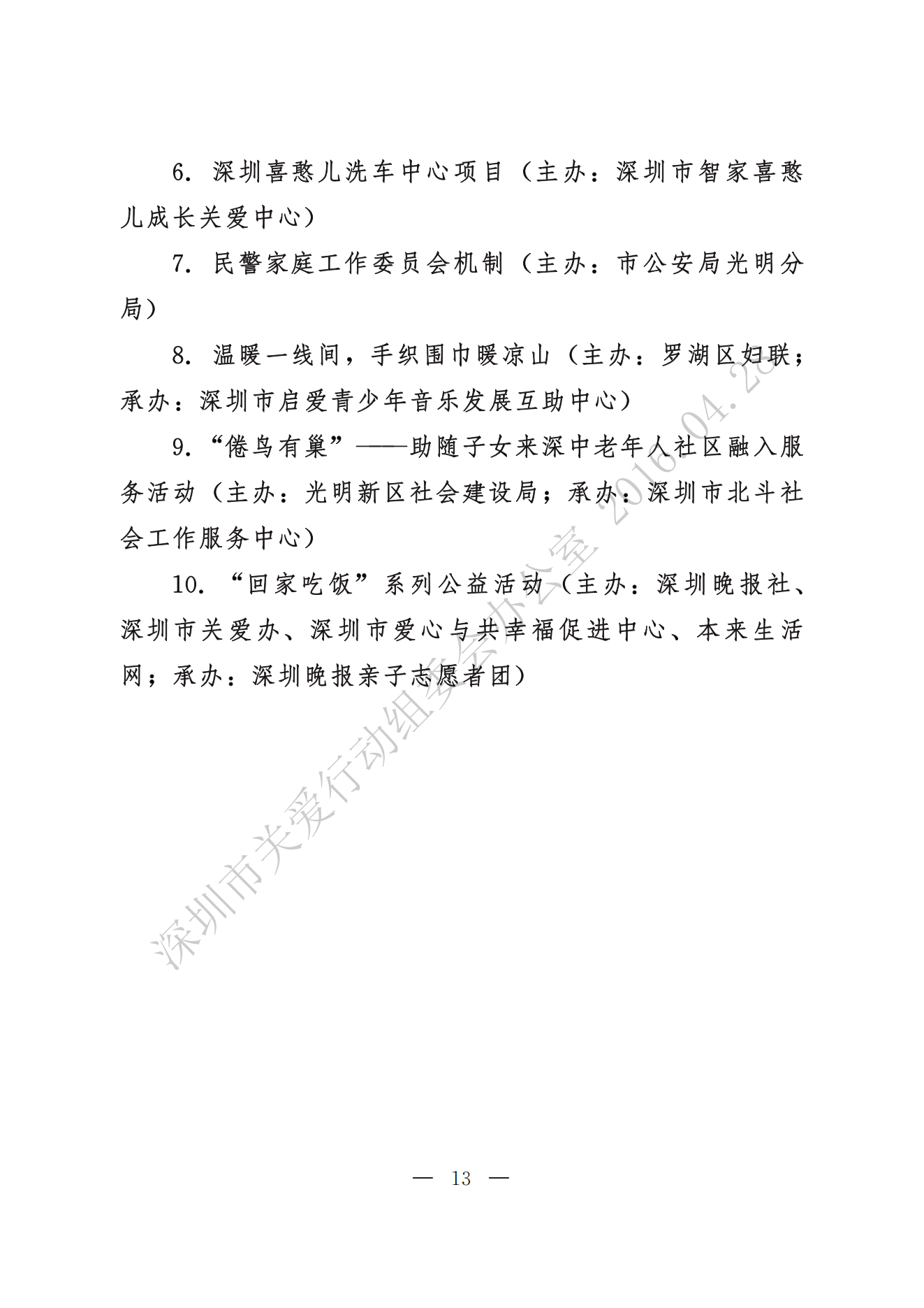 關(guān)于表彰第十三屆深圳關(guān)愛行動先進(jìn)集體、先進(jìn)個人和優(yōu)秀項目的通報