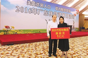 為了響應(yīng)國(guó)家和省委省政府的號(hào)召,積極參與廣東扶貧日活動(dòng),為廣東實(shí)現(xiàn)2018年貧困人口全部脫貧的目標(biāo),6月30日,廣東省政協(xié)常務(wù)委員、恒裕集團(tuán)董事長(zhǎng)龔俊龍出席了“2016年廣東扶貧濟(jì)困日活動(dòng)”,再次捐款1億元支持慈善事業(yè),并榮獲“廣東扶貧濟(jì)困”紅棉杯金杯獎(jiǎng),在廣州珠島賓館受到省領(lǐng)導(dǎo)的親切接見。