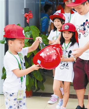 ▲“小候鳥”參觀由他們的父母參與施工建設的前海自貿大廈工地。