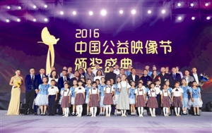 ▲中國公益映像節(jié)頒獎盛典現(xiàn)場,獲獎?wù)吲c嘉賓合影。