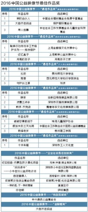 本屆映像節(jié)以“看見世界的愛”為主題,自2016年7月21日啟動以來,共收到來自國內(nèi)外27個省市自治區(qū)284家政府、社會組織、企業(yè)及個人報送的733部公益影片,其中美國、德國、韓國等地也選送了眾多優(yōu)秀的公益影片。今年影片多樣、領(lǐng)域拓寬,題材涵蓋扶貧援建、環(huán)境保護(hù)、助學(xué)助殘、婦女兒童、公益理念倡導(dǎo)等各個領(lǐng)域。