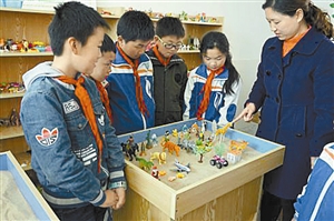 漢源縣九襄鎮(zhèn)第四小學(xué)學(xué)生在沙盤游戲中心接受心理引導(dǎo)。