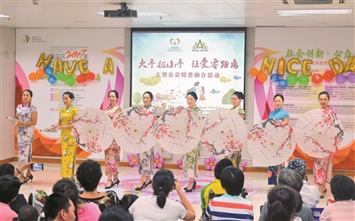 在全國助殘日來臨之際,深圳市天使家園聯合社會愛心團體、愛心企業及愛心人士舉辦“大手拉小手 讓愛零距離”大型公益特普融合活動,活動在第三屆福田“社會組織服務周”期間舉辦,是一次社會力量大融合活動。圖為龍之韻老年人藝術協會帶來的精彩表演。