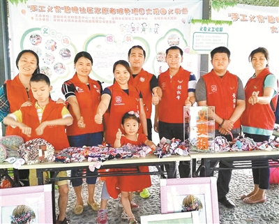 日前,光明新區(qū)光明辦事處碧眼社區(qū)黨群服務(wù)中心,市社聯(lián)社工服務(wù)中心在光明農(nóng)場(chǎng)大觀園農(nóng)科大觀園舉辦了一場(chǎng)義賣活動(dòng)。親子義賣活動(dòng)是“手工義家”志愿者服務(wù)項(xiàng)目?jī)?nèi)容之一,圖為義工和小朋友一起賣手工藝品。