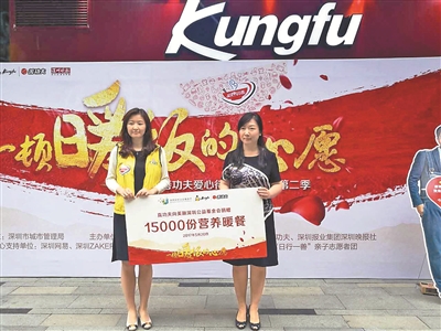▲真功夫向美麗深圳公益基金會捐1.5萬份營養(yǎng)暖餐。馮明 攝