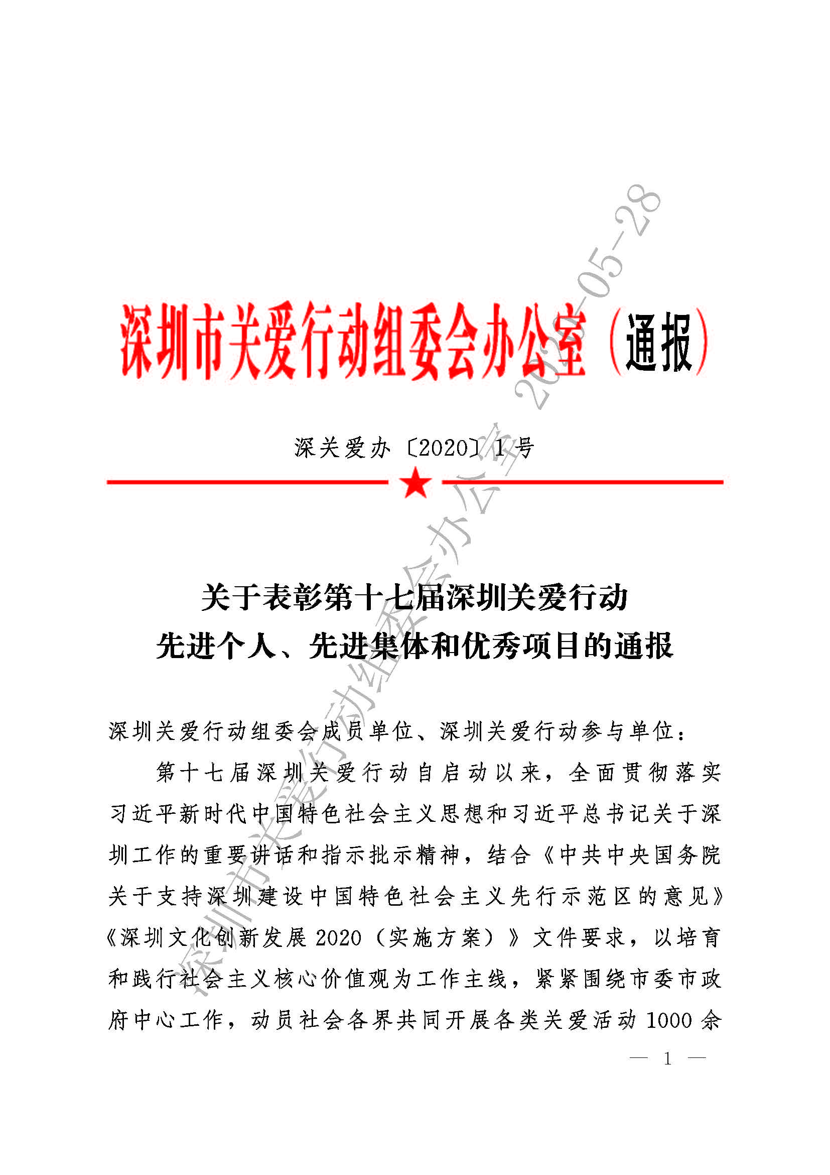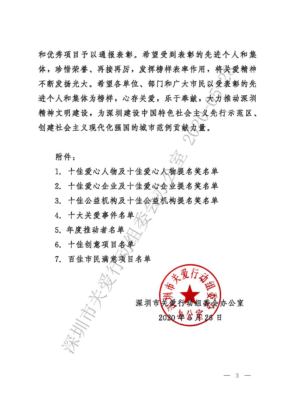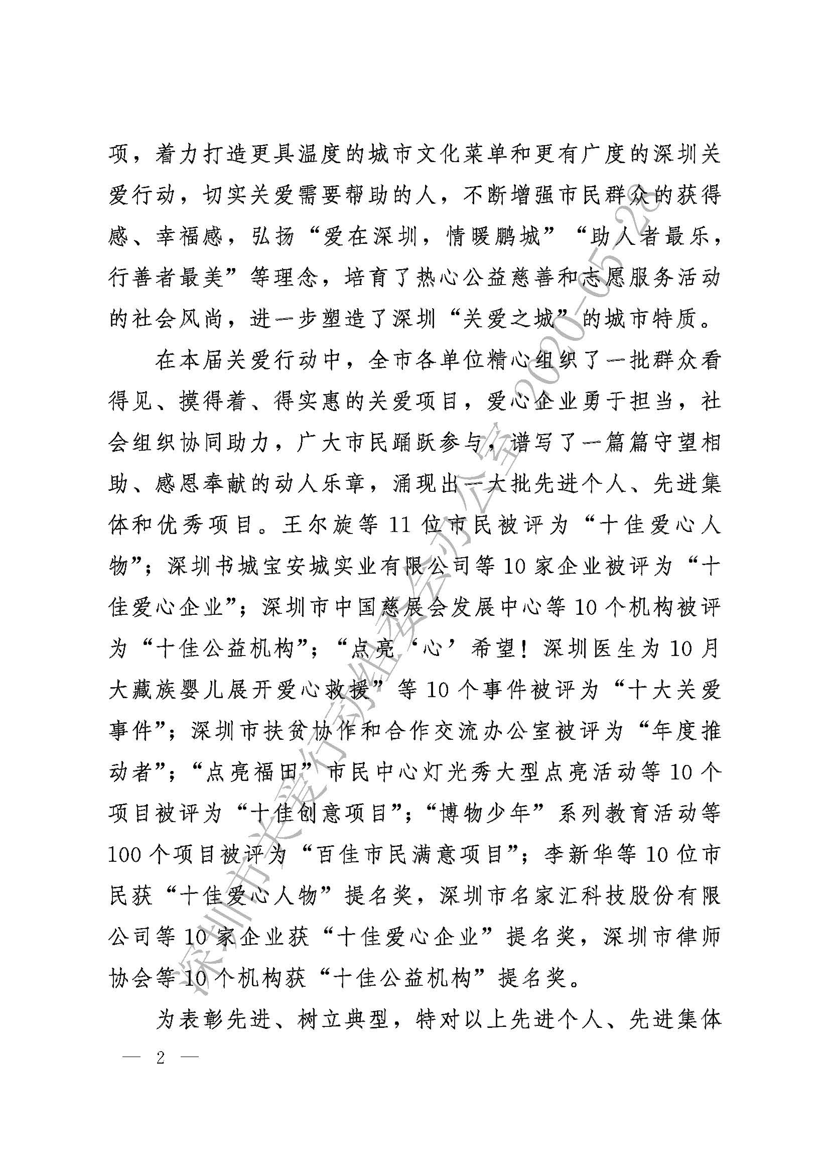 關于表彰第十七屆深圳關愛行動先進個人、先進集體和優秀項目的通報