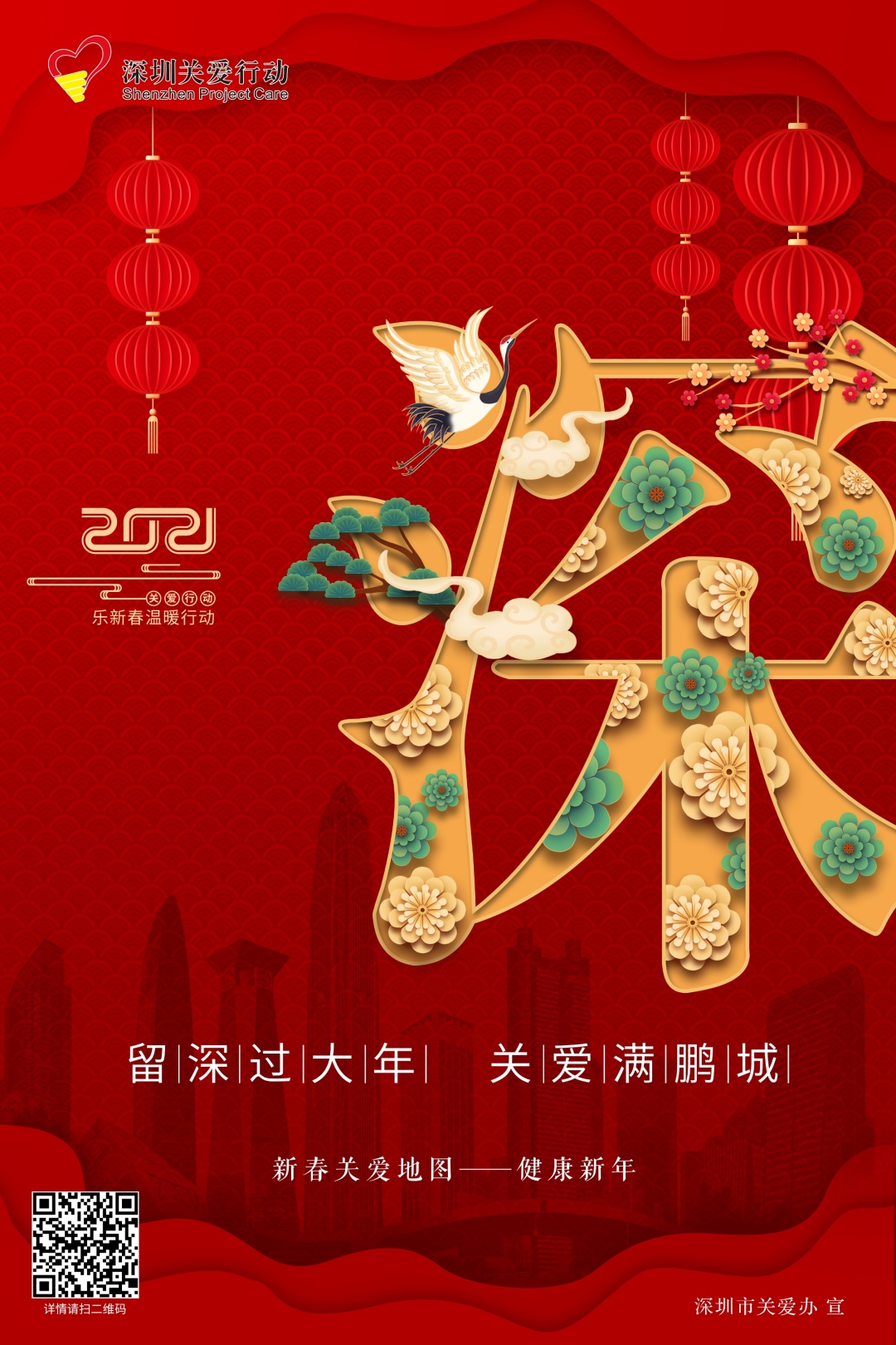為豐富留深過年市民新春文化生活,讓廣大市民在深圳度過一個溫暖、祥和、豐富、有意義的新春佳節,第十八屆深圳關愛行動“樂新春”溫暖行動在全市各區閃亮推出。“溫暖新年”“健康新年”“藝術新年”“網趣新年”“創益新年”五大主題板塊首期將開展近百項關愛活動,讓留深的你歡樂過大年。