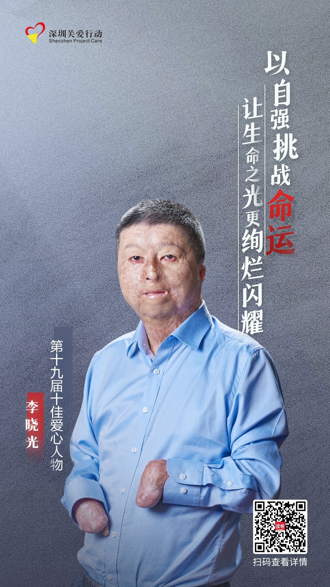 富士康科技集團技術(shù)經(jīng)理。當提起“全國勞動模范”“專利大王”“自動化設(shè)備研發(fā)部經(jīng)理”這些光環(huán)時,人們很難將它們與全身76%重三度燒傷、雙手截肢、右腳跛行的李曉光聯(lián)系在一起。然而事實就是如此,雖然重度殘疾,他依然20年如一日地撲在消費電子產(chǎn)品、自動化設(shè)備生產(chǎn)研發(fā)一線,用僅剩一個指關(guān)節(jié)的“雙手”錄測數(shù)據(jù)、組裝樣品,累計提出專利申請700余件,獲得中國、美國官方授權(quán)專利300余件。燒傷之際,社會各界為他送去了溫暖的關(guān)愛,當自己站起來后,他也將這種溫暖傳遞下去。工作之余,他化身“愛的導師”,主動站上演講臺,為3萬余人分享自己的奮斗歷程,激勵他們鉆研創(chuàng)新、迎難而上。