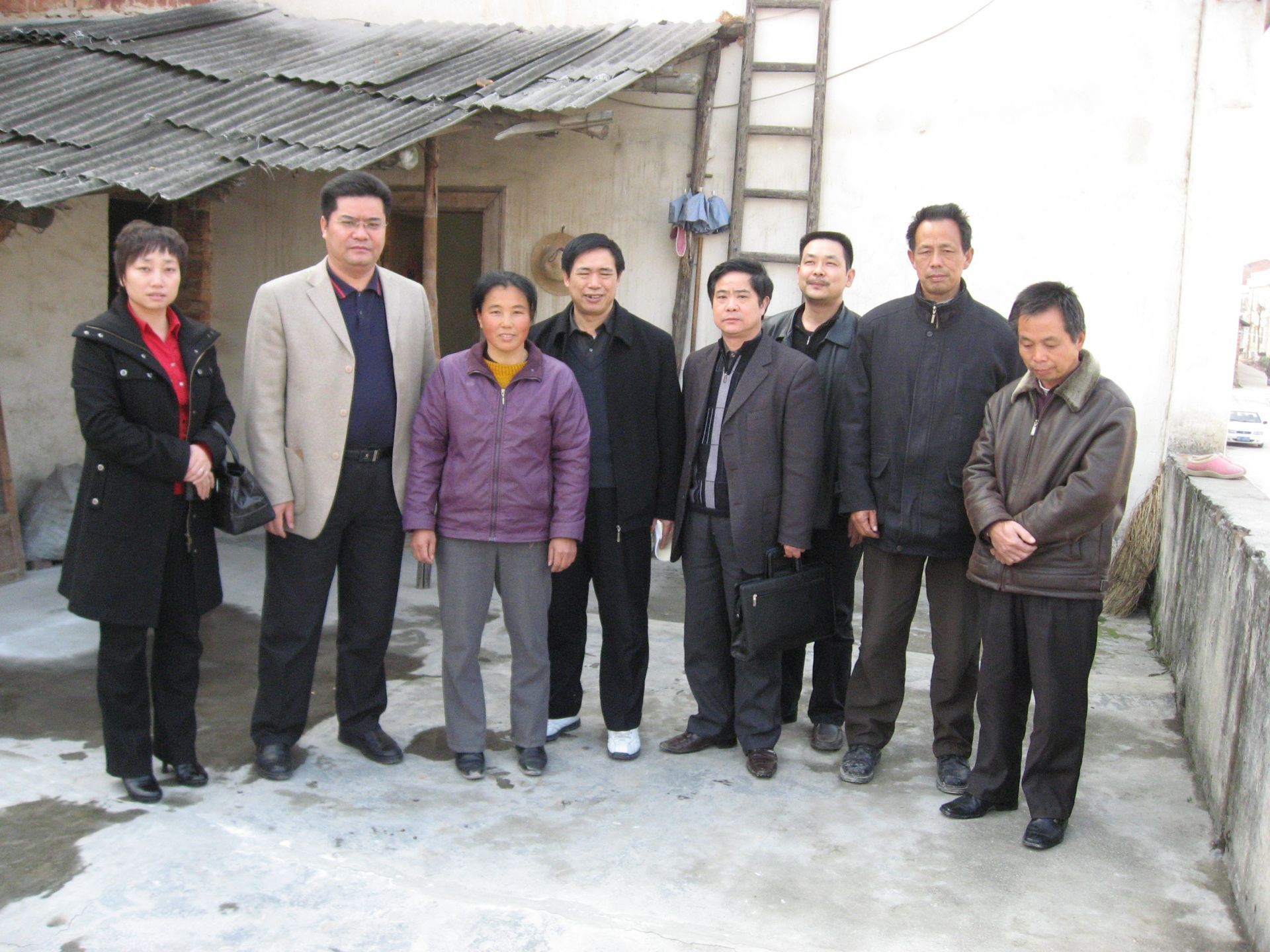 伊俊宏(左一)到湖南平江縣學生家里看望學生父母時合影。圖片由受訪者提供