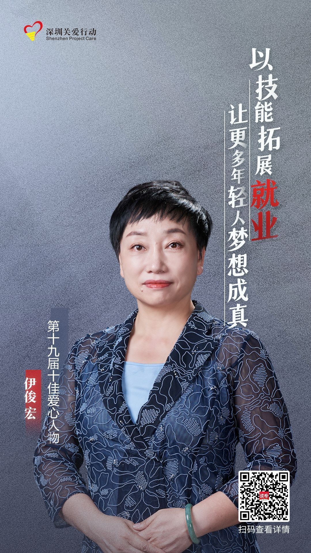 當選第十九屆深圳關愛行動“十佳愛心人物”,這是榮譽,更是鼓勵和鞭策。讓學生在技術學習的道路上有了人生目標,眼里重現光彩,我只是履行了一名教育工作者的職責。職業教育和技能幫扶這條路,我們一定會堅持走下去。