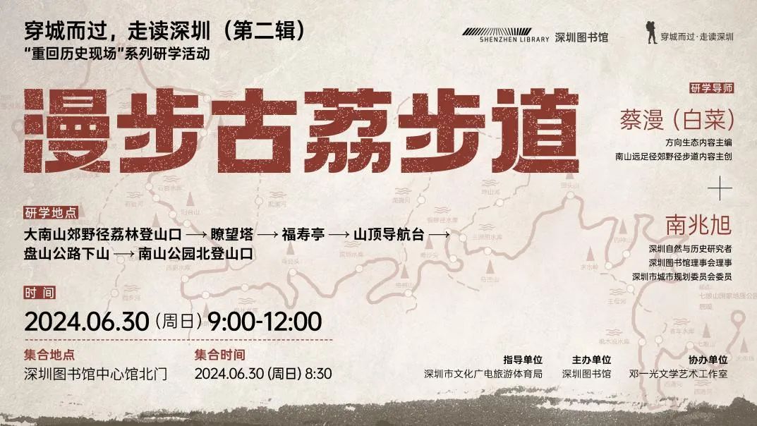活動(dòng)簡(jiǎn)介:嶺南四時(shí)春,入夏荔枝紅。在嶺南荔枝成熟的最好時(shí)節(jié),深圳圖書(shū)館舉辦“穿城而過(guò),走讀深圳”(第二輯)“重回歷史現(xiàn)場(chǎng)”系列研學(xué)活動(dòng),邀請(qǐng)深圳自然與歷史研究者南兆旭、方向生態(tài)內(nèi)容主編蔡漫,帶領(lǐng)市民讀者一同漫步古荔步道,探究深圳種植荔枝的緣起,了解各式荔枝的品類(lèi),品讀嶺南荔枝文化。