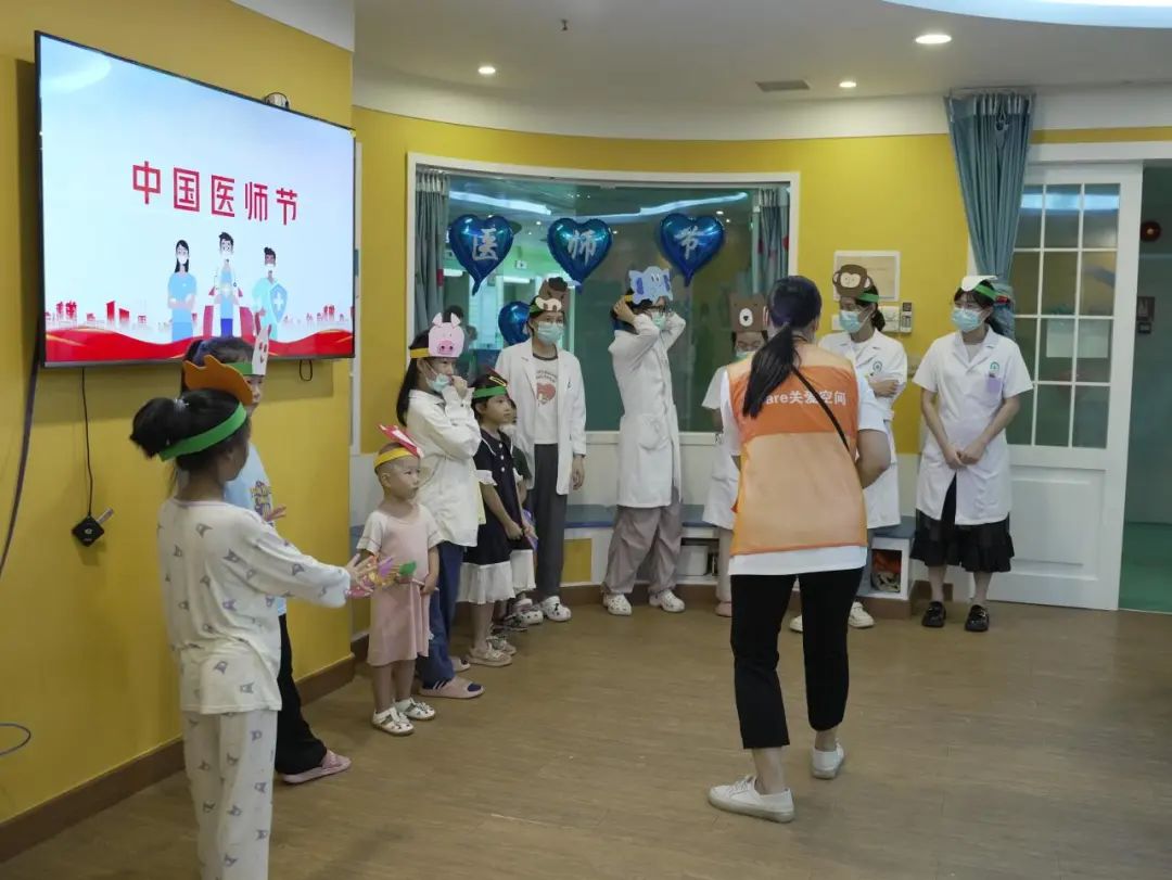 2024年8月19日,第七個中國醫師節來臨之際,深圳市關愛辦、深圳市兒童醫院攜手騰訊公益慈善基金會、中興通訊公益基金會、深圳市弘法寺慈善功德基金會、萬科公益基金會、多特瑞(上海)商貿有限公司、鵬華基金管理有限公司、深圳市福光公益基金會、中國國際海運集裝箱(集團)股份有限公司等多家愛心單位,在深圳市兒童醫院·Vcare關愛空間成功舉辦了一場以“健康童年,與您‘醫’起”為主題的醫師節品牌活動,共195個患兒家庭參與,為 414位醫師致以崇高的敬意與節日的祝福。