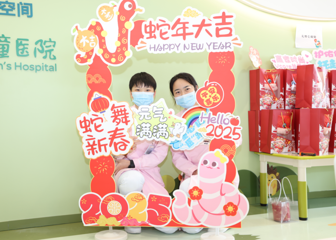 新春佳節本是闔家團聚、喜氣洋洋的日子,然而,有一群孩子因疾病原因不得不留在醫院接受治療。為了讓這些患兒感受到節日的溫暖與歡快,1月18日,深圳市兒童醫院兩個院區的10個Vcare關愛空間聯合舉辦了一場主題為“靈蛇舞動,春節‘童’歡”的游園會,為506名患兒及家庭、260名醫護人員送去了新春的祝福。