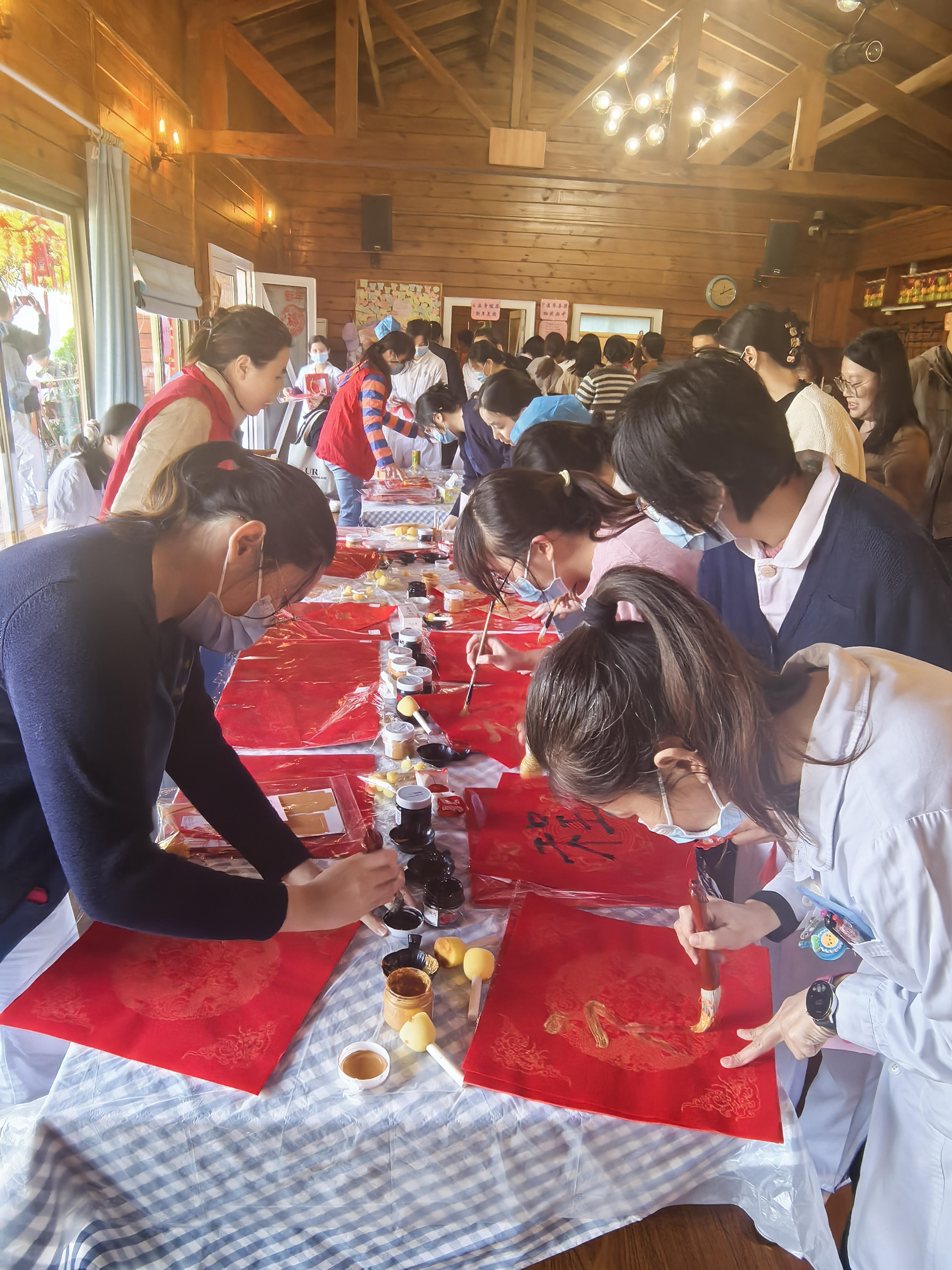 游園會內容豐富多樣,醫護人員從“醫蹴而就”開啟游園之旅,在“樂猜燈謎”,醫護人員們紛紛施展才智,趣味橫生的謎底一一被揭開;在“醫揮而就”環節,醫護人員揮毫潑墨或拓印福字,傳遞著新年的美好祝愿;在“醫心祈福”區域,他們更是滿懷深情地寫下了對同事、對孩子、對未來的美好祝福,字里行間洋溢著濃濃的溫情與關懷等。