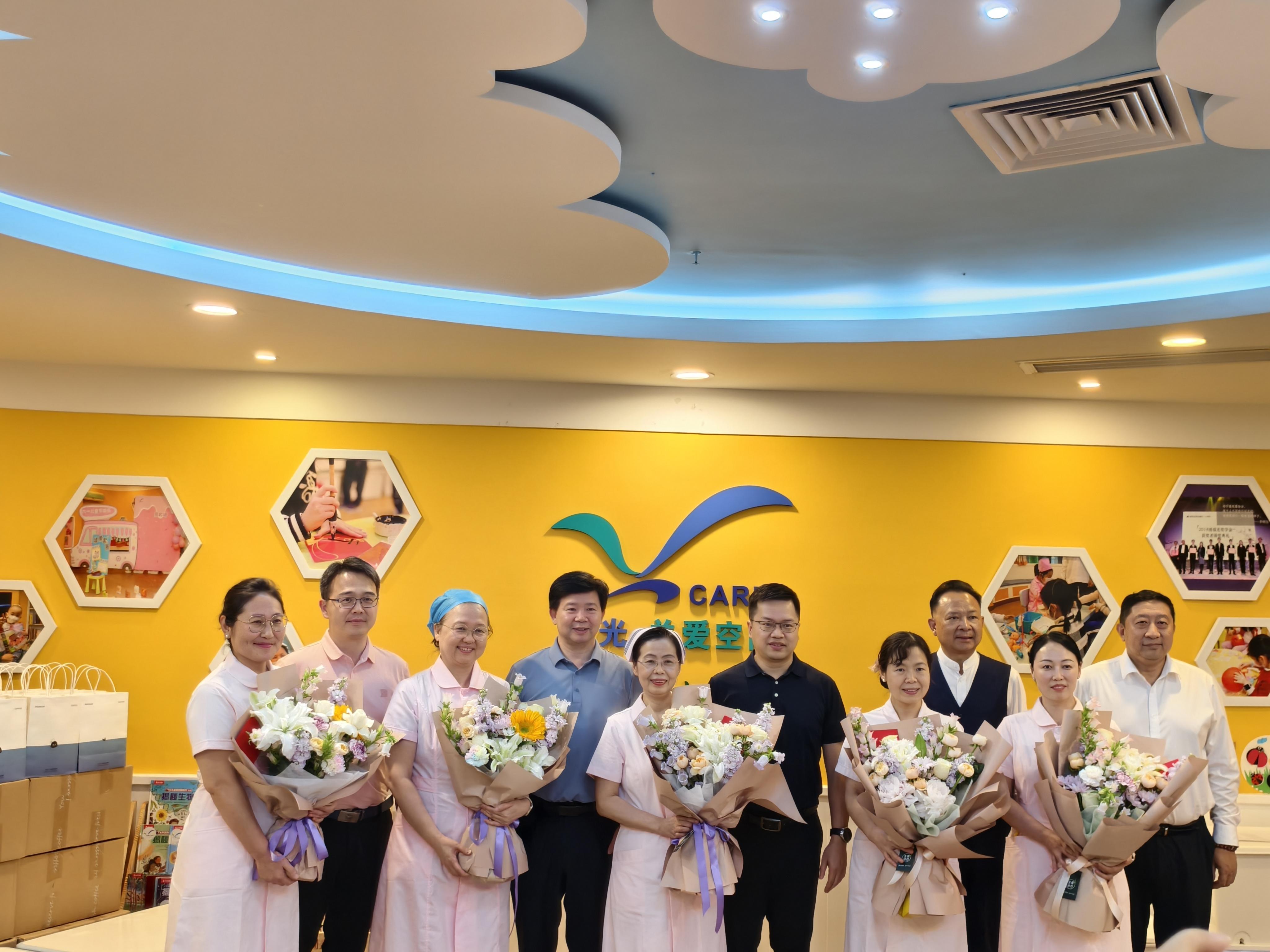 深圳市關愛辦專職副主任陳建中,全國道德模范、關愛辦主任助理孫影,福光基金會理事長、天安駿業投資發展集團執行總裁田衛東,福光基金會理事、秘書長王愛華,杭州明安迪電子商務有限公司大客戶部總監潘子昭,深圳市兒童醫院黨委書記羅新樂,深圳市兒童醫院院長、黨委副書記麻曉鵬,深圳市兒童醫院副院長曾洪武等出席了活動。