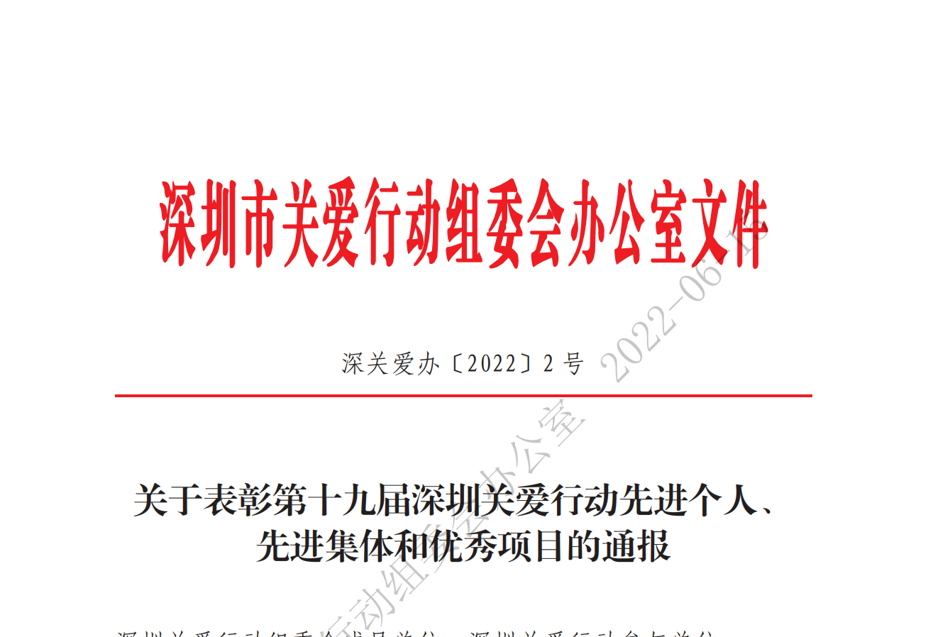 關于表彰第九屆深圳關愛行動先進集體、先進個人和優秀項目的通報